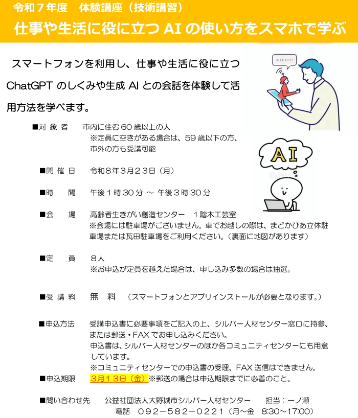 | (C)大野城市高齢者生きがい創造センター | ||||